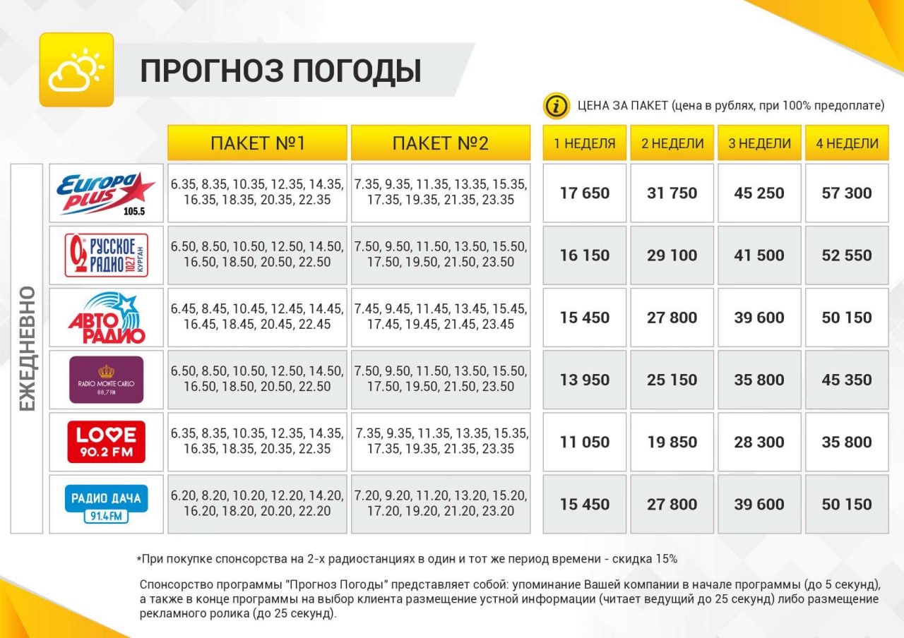 "ПРОГНОЗ ПОГОДЫ" (цена в рублях, при 100% предоплате) |